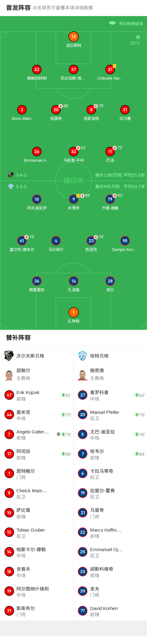 第77分钟,沃尔夫斯贝格球员Angelo Gattermayer打入一球。