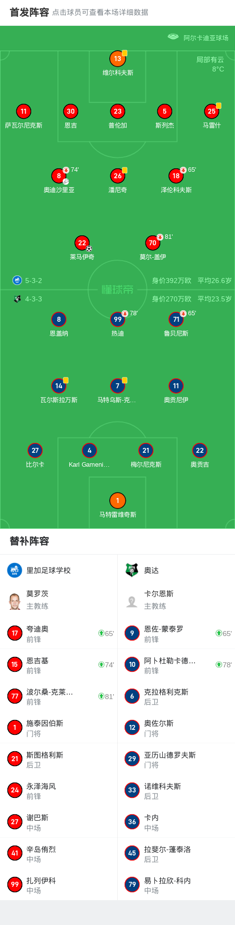里加足球学校1-0奥达,莱马伊奇一剑封喉