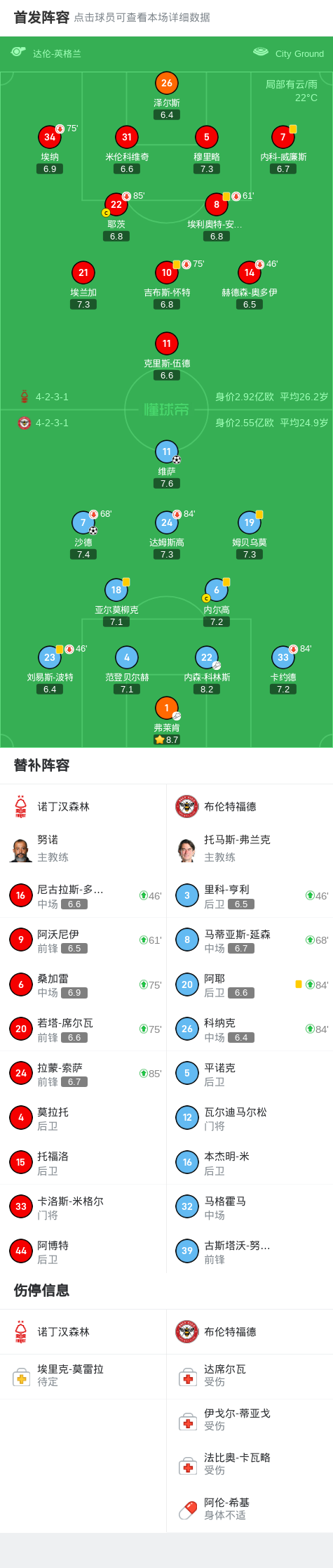 诺丁汉森林0-2布伦特福德,沙德破门,维萨建功