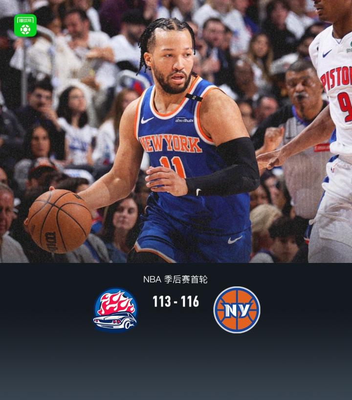 尼克斯116-113大比分4-2淘汰活塞,布伦森40分&三分准绝杀