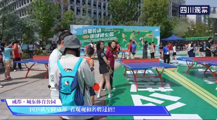 国乒教练王皓、马琳、肖战、邱贻可、刘志强、刘恒等,国乒队员孙颖莎、王楚钦、王曼昱、梁靖崑、林高远、何卓佳、徐晨皓、周恺、赵子豪等与成都市民互动。