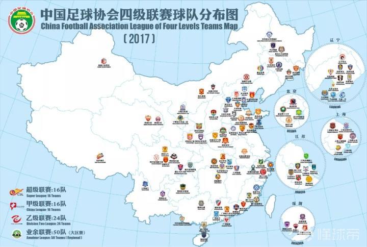此前,曾有微博网友(Bi77y)制作了这样一张中国四级联赛球队分布图,可以更加清晰的展示我国四级职业联赛的版图。