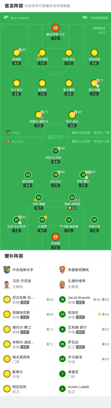 第3分钟,中央海岸水手球员勃兰特曼助攻阿图尔-德利马打入一球。