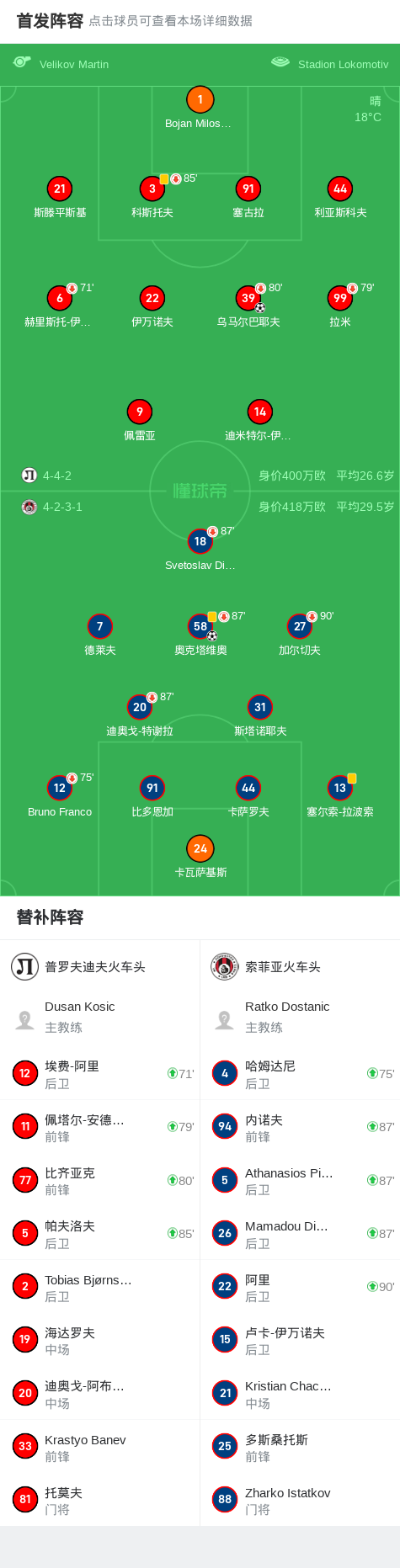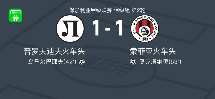 第42分钟,普罗夫迪夫火车头球员乌马尔巴耶夫打入一球。