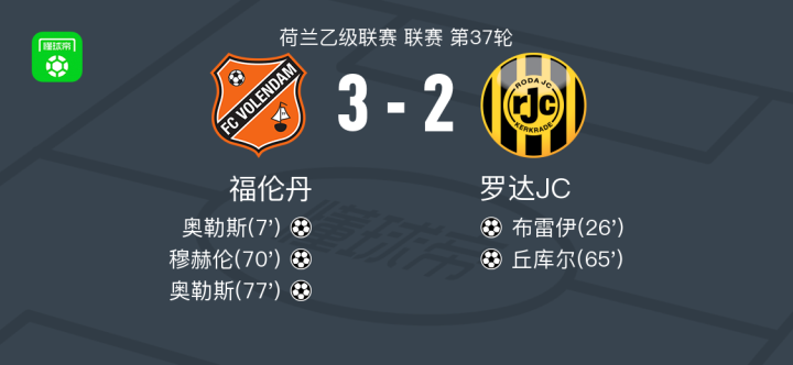 福伦丹3-2罗达JC,奥勒斯梅开二度,穆赫伦破门
