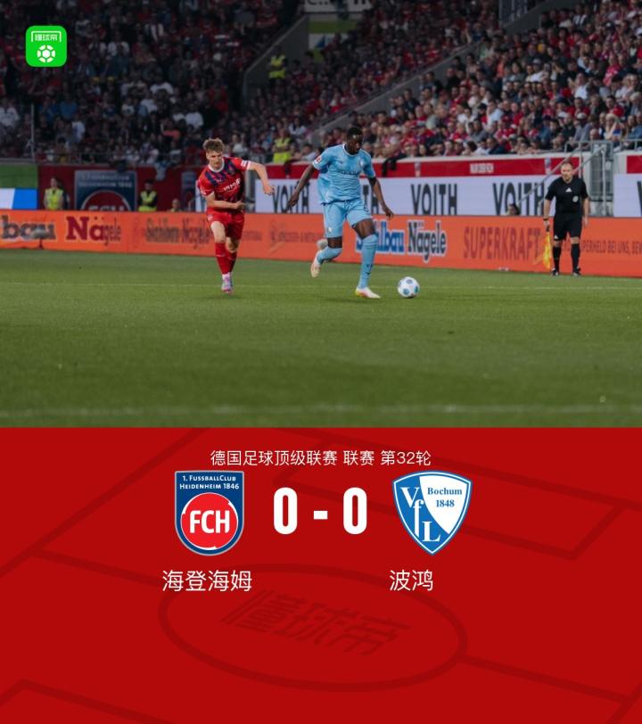 海登海姆0-0送波鸿7轮不胜,波鸿保级仅存理论可能战报bot @懂球帝2025-05-03 04:35北京时间5月3日,德国足球顶级联赛第32轮,海登海姆主场迎战波鸿。全场比赛双方均未能取得进球,最终以0-0的比分握手言和。点击查看本场比赛详细数据>>点击查看德甲完整积分榜>> 球队阵容 技术统计 展开更多