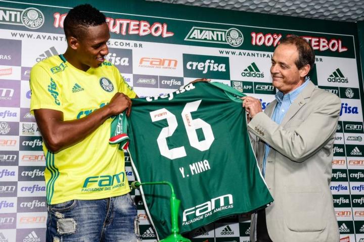 当时,由库卡执教的帕尔梅拉斯正在寻找一位中卫,并将目光投向整个南美市场。起初,库卡的首选是弗卢米嫩塞的本土中卫古姆,但“三色军团”并不愿意放人。随后,“绿衫军”就与圣塔菲独立达成了一致(圣塔菲仍持有球员20%的所属权),并与耶里·米纳签订了一份为期5年的合约。在哥甲开幕季结束后(当年5月),米纳就正式披上了“绿衫军”的战袍,并成为继弗雷迪·林孔、阿罗德·洛萨诺、福斯蒂诺·阿斯普里拉、莱昂·穆尼奥斯和巴勃罗·阿尔梅罗之后,第6位为帕尔梅拉斯效力的哥伦比亚球员。