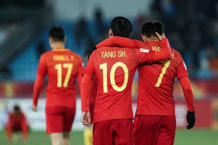 比赛第94分钟,韦世豪中场拿球奔袭近50米,在禁区外围起脚劲射击中横梁,错失了绝平的机会。输掉比赛的韦世豪懊恼不已,跪倒在地。队友唐诗见状,走上前来将韦世豪扶起,并给他送上了友情的拥抱予以安慰。