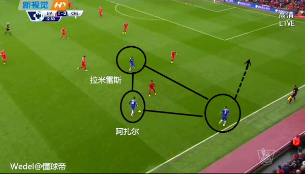 除此之外,阿扎尔的跑动位置也比较丰富。开场没多久一次中路突破之后,阿扎尔先是在左路创造角球机会,之后又到右路,与伊万、拉米雷斯寻找联系。