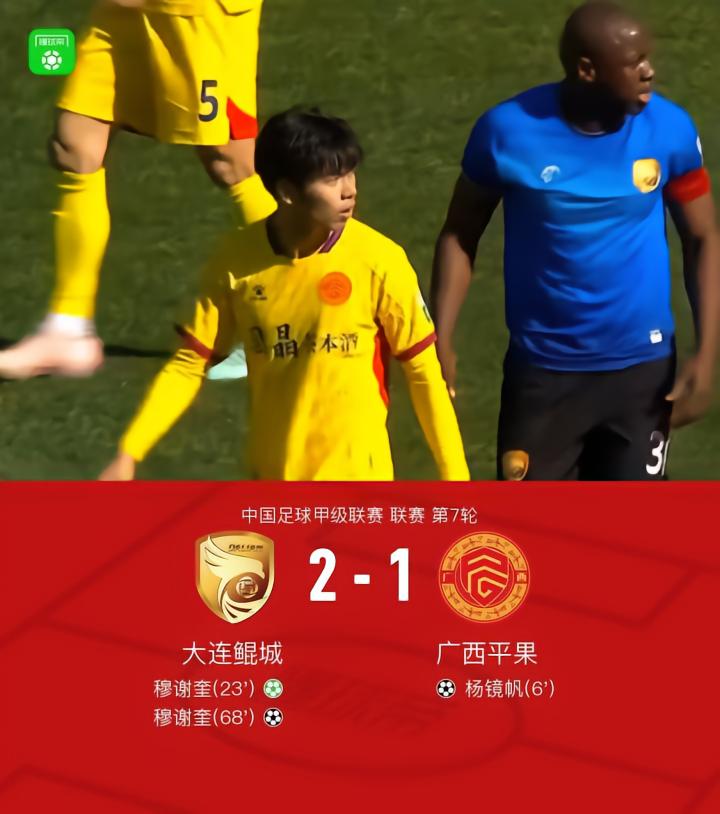 大连鲲城2-1逆转广西平果,穆谢奎双响,杨镜帆破门