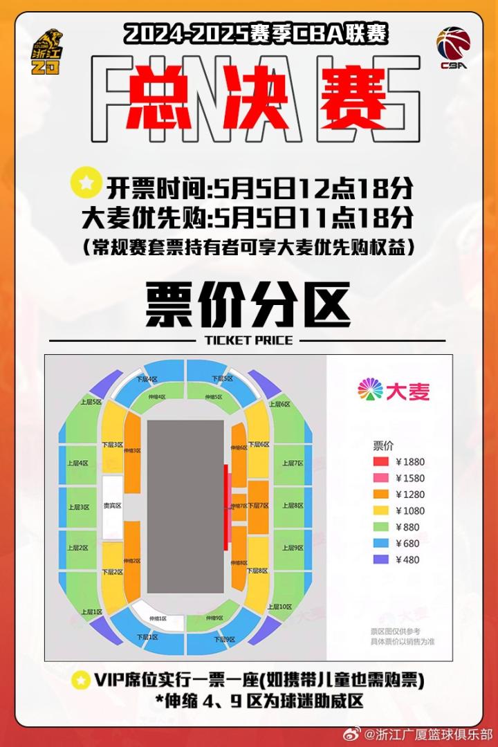 广厦主场总决赛门票最低480元&最高1880元,5月5日G1&G2开售