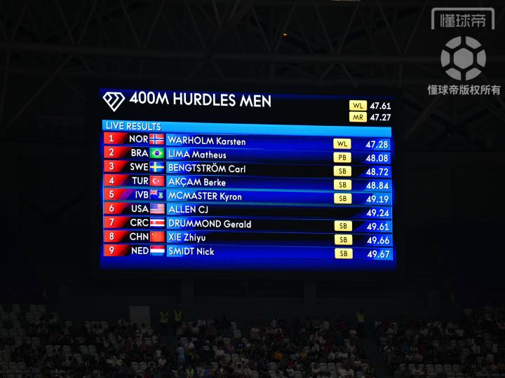 男子400米栏:世界纪录保持者瓦尔霍姆47.28秒夺冠,谢智宇第八gaoniu @懂球帝2025-05-03 19:315月3日,2025长三角国际田径钻石赛男子400米栏对决中,世界纪录保持者瓦尔霍姆47.28秒夺冠,谢智宇第八。瓦尔霍姆以47.28秒的成绩夺冠,距离赛会纪录47.27仅差0.01秒。中国选手谢智宇以49.66秒的成绩获得第八名。展开更多