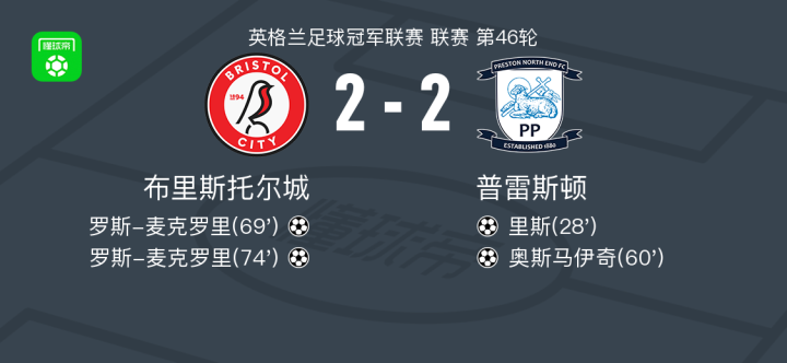 布里斯托尔城2-2普雷斯顿,里斯首开记录,罗斯-麦克罗里救主