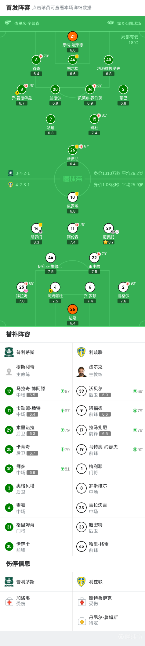 第18分钟,利兹联球员拜拉姆自摆乌龙。