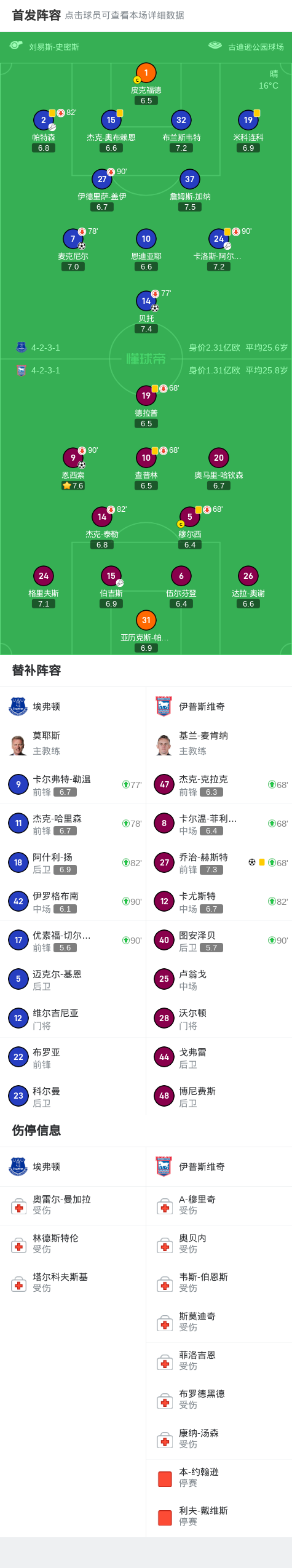 埃弗顿2-2伊普斯维奇,贝托破门,麦克尼尔、恩西索献世界波