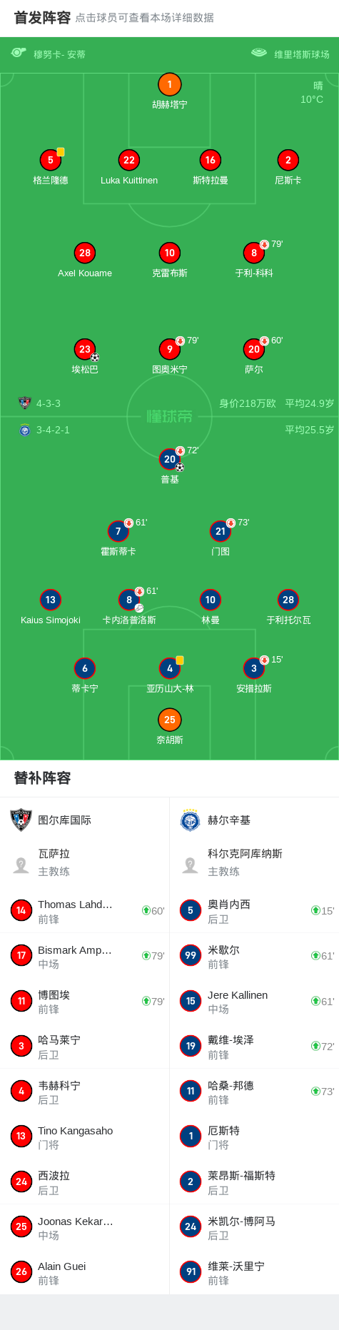 图尔库国际1-1赫尔辛基,普基首开记录,埃松巴扳平比分