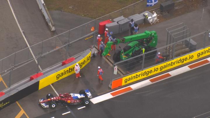 直接下班!勒克莱尔在冲刺赛前往发车格途中撞墙,赛车受损严重!