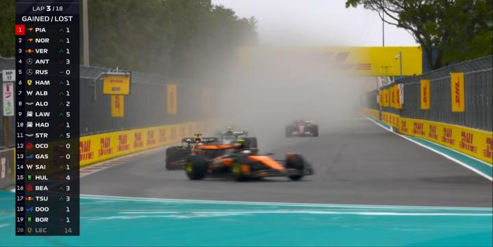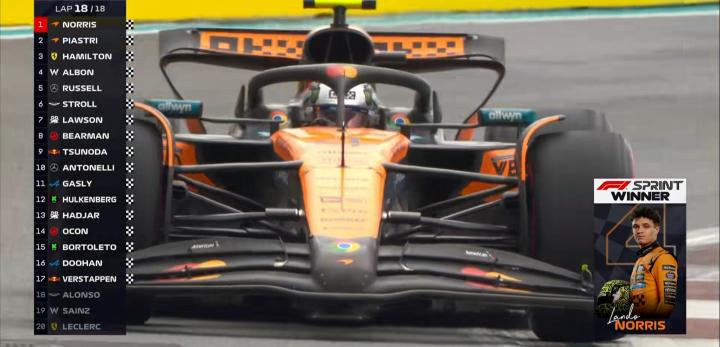 混乱!F1迈阿密冲刺赛:诺里斯夺冠,汉密尔顿P3,维斯塔潘垫底