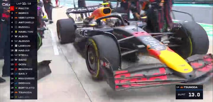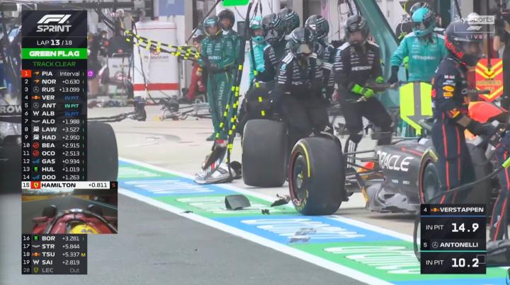 第13圈:维斯塔潘、安东内利进站换上软胎!
