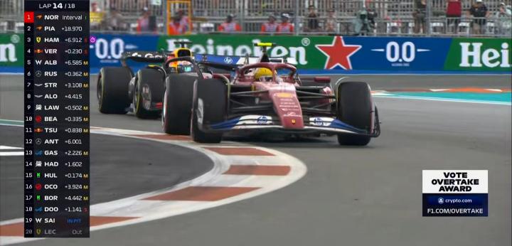 汉密尔顿超越维斯塔潘上升到第3,诺里斯目前还在使用半雨胎;