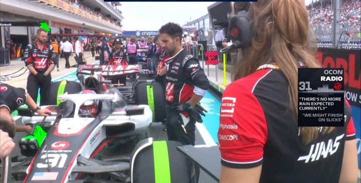 劳拉-穆勒告知奥康赛道将没有进一步的降水,奥康表示冲刺赛可能会出现换胎的情况,大家会用干胎冲线!