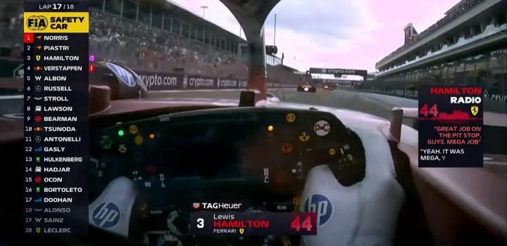第17圈:汉密尔顿表扬了车队的进站以及策略,这直接让他上升到第3!