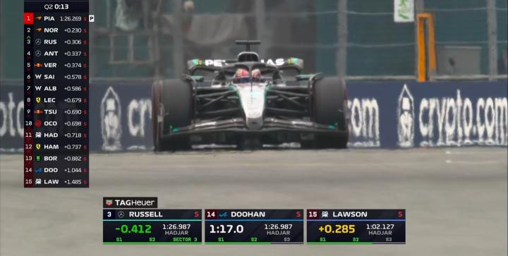 Q2被淘汰车手:哈贾尔、汉密尔顿、博托莱托、杜汉、劳森