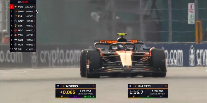 两台迈凯伦先后刷新成绩,但都未能超越维斯塔潘,诺里斯排在第2,皮亚斯特里排在第3!
