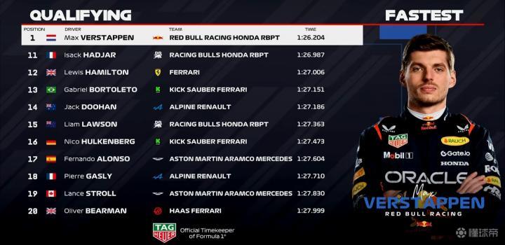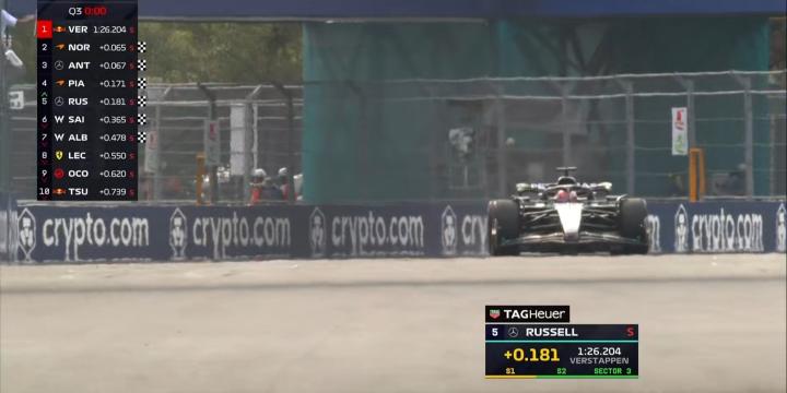 F1迈阿密排位赛:维斯塔潘杆位,安东内利P3,汉密尔顿Q2出局