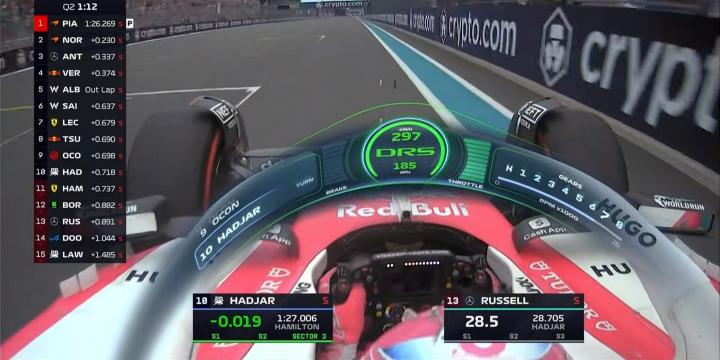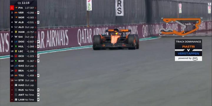 Q1起表,皮亚斯特里来到榜首,两台梅赛德斯&小牛尚未做出有效成绩;