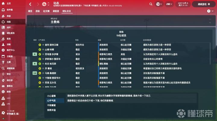另外,别忘了留意一下动态系统,刚进入球队的话,建议点击球队会议,安抚球员。