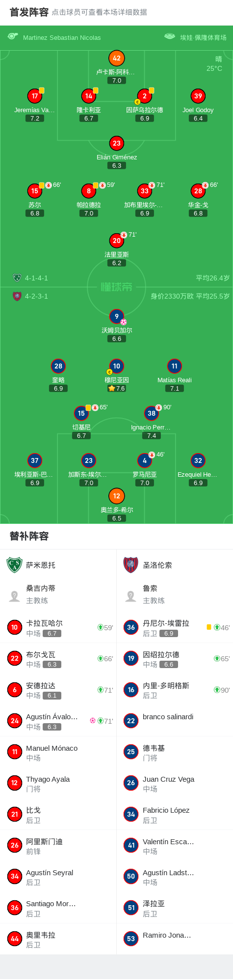 第87分钟,萨米恩托球员Agustín Ávalos Molina自摆乌龙。