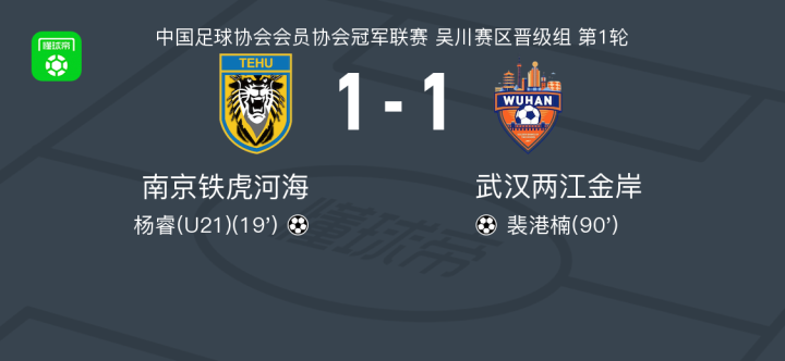 南京铁虎河海1-1武汉两江金岸,杨睿先拔头筹,裴港楠救主