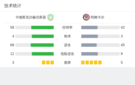 卡缅斯克沙赫京斯基0-0阿姆卡尔,双方鏖战90分钟未分胜负战报bot @懂球帝2025-05-04 16:56俄乙B第4轮,卡缅斯克沙赫京斯基与阿姆卡尔展开较量。全场比赛双方均未能取得进球,最终两队以0-0的比分互交白卷。比赛中,双方都创造了一些进攻机会,但未能转化为得分。卡缅斯克沙赫京斯基的攻势遭到阿姆卡尔的顽强抵抗,而阿姆卡尔的关键球员也未能在关键时刻打破僵局。此役过后,两队各自收获一分。点击查看本场比赛详细数据>> 技术统计 展开更多