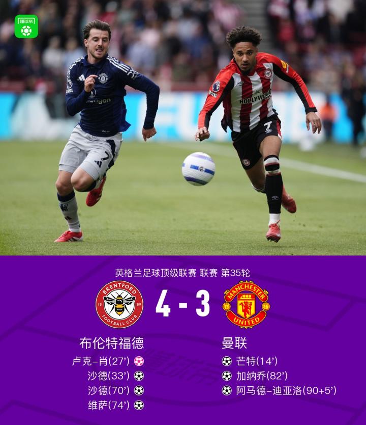 第90+5分钟,还有悬念吗?伤停补时阶段阿马德破门,布伦特福德4-3曼联