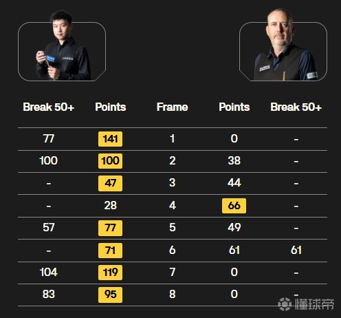 北京时间5月4日晚20:00,2025斯诺克世锦赛决赛第一阶段的8局比赛已经结束,中国选手赵心童7-1马克-威廉姆斯。