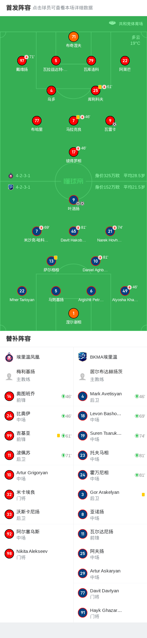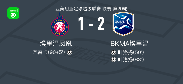BKMA埃里温2-1埃里温凤凰,叶洛扬包办2球