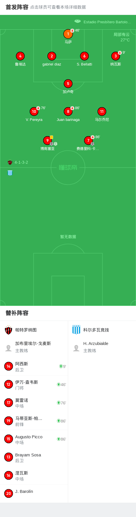 第1分钟,帕特罗纳图球员费德里科-卡斯特罗打入一球。