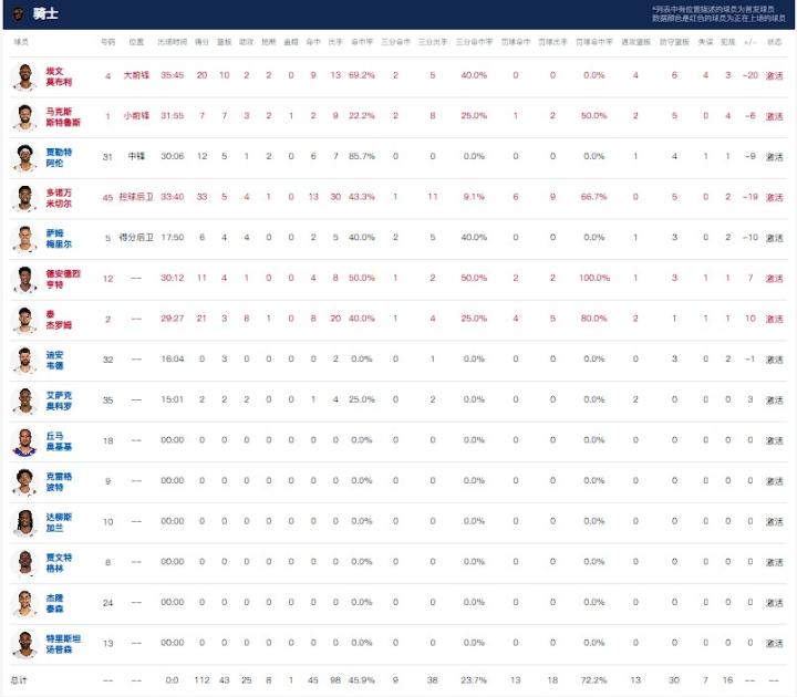 克利夫兰骑士米切尔33分5板4助1断,杰洛姆21分3板8助1断,埃文-莫布利20分10板2助2断;