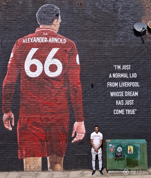 在几个街区之外,西比尔路的街角处,墙上有一幅描绘阿诺德的巨型壁画,旁边还配有这样一句话:“我只是一个来自利物浦的普通小伙子,而我的梦想刚刚成真。”