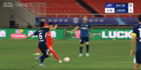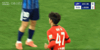 第41分钟,海港角球,禁区内二点球,莱昂纳多一脚轮空