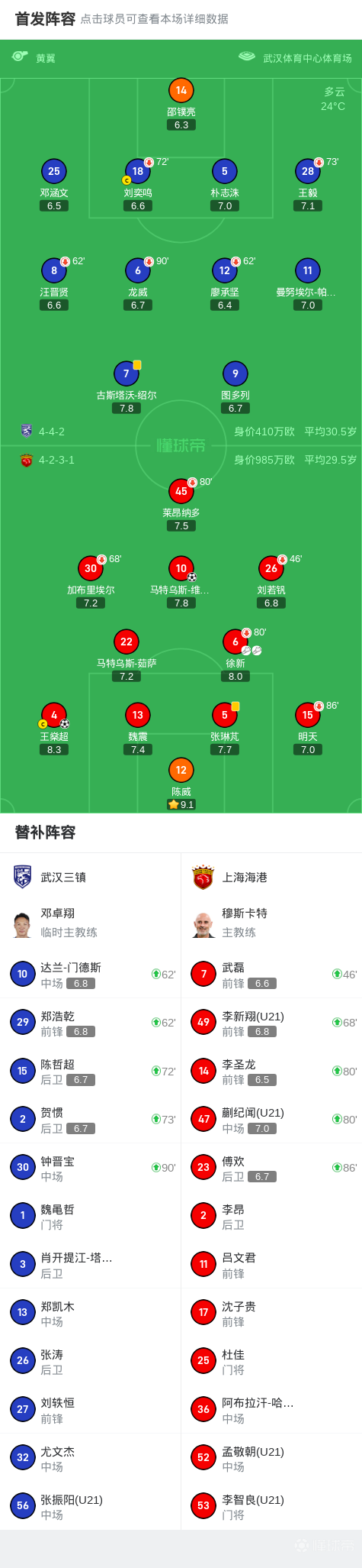 第80分钟,蒯纪闻、李圣龙替补上阵,换下徐新、莱昂纳多