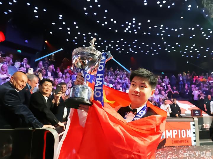 赛后,中国斯诺克名将丁俊晖更新社媒祝贺赵心童,他写道:“祝贺赵心童夺得世锦赛冠军!
