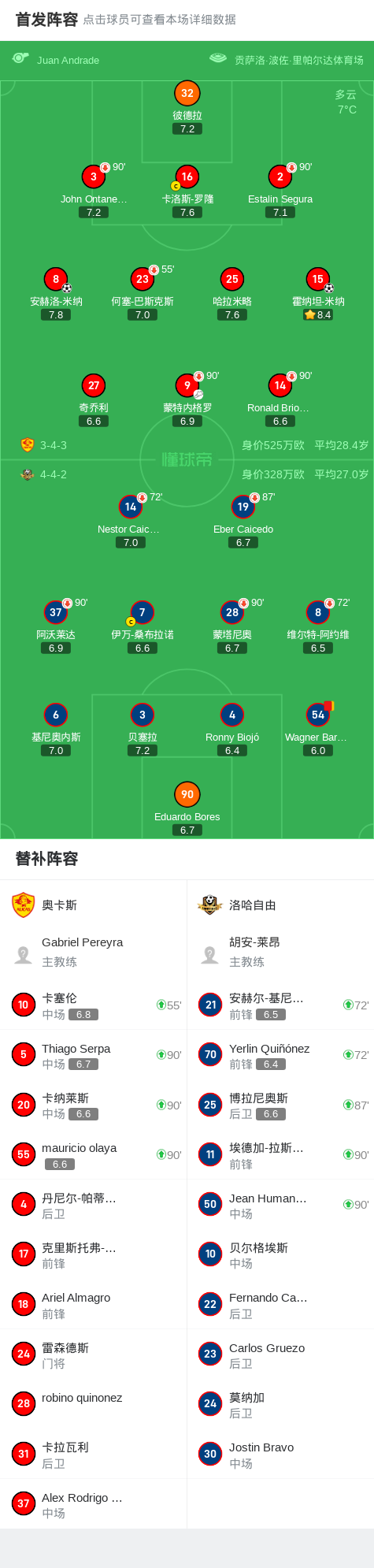 第60分钟,奥卡斯球员蒙特内格罗助攻霍纳坦-米纳打入一球。