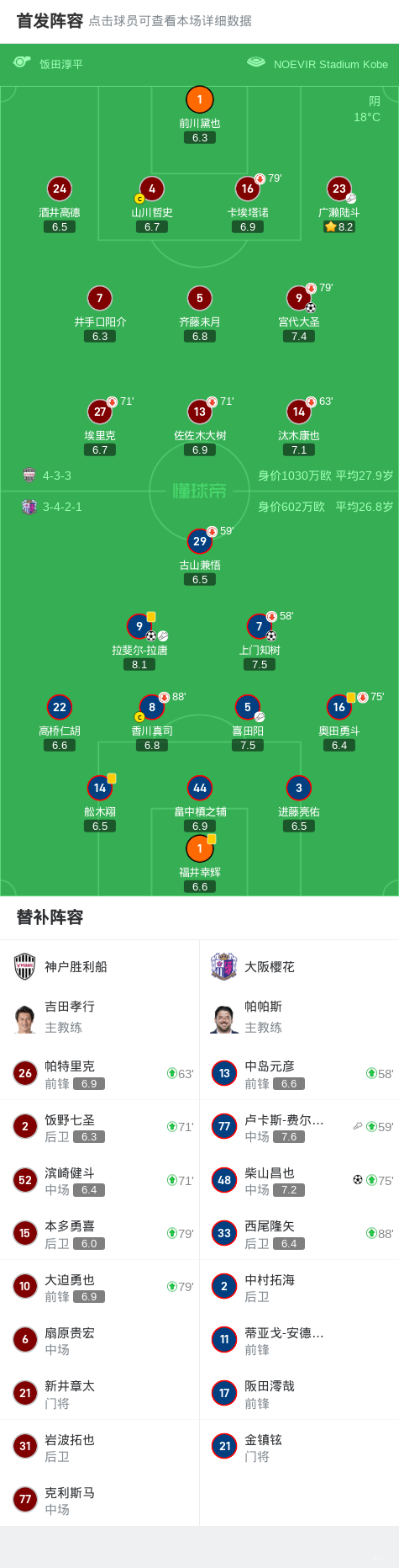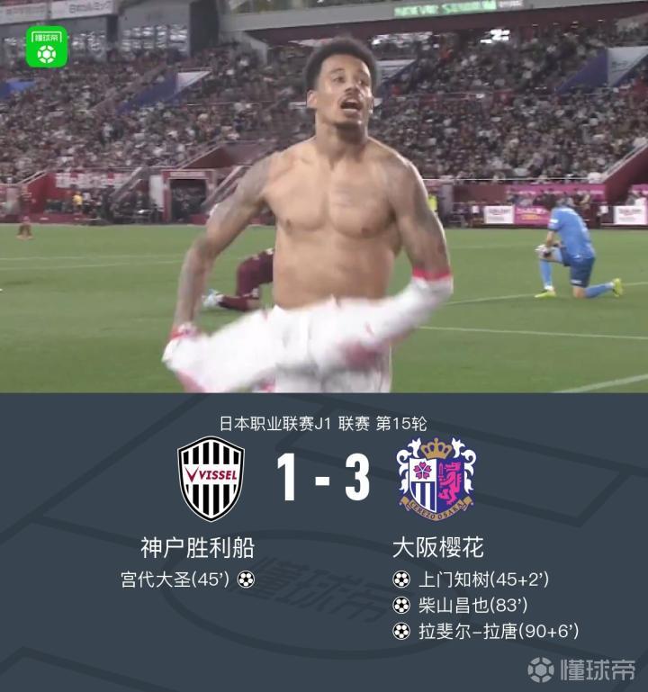 神户主场1-3大阪樱花,宫代大圣连场破门难救主,拉唐传射
