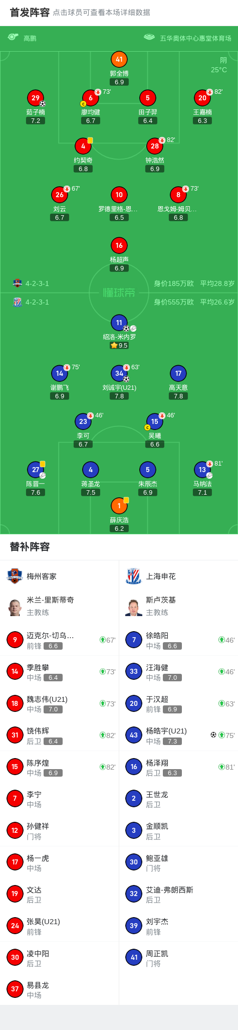 第65分钟,马纳法右路传中,米内罗头球破门,申花2-0领先梅州!