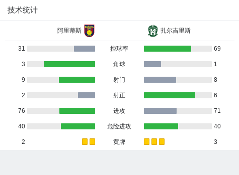 第2分钟,扎尔吉里斯球员布鲁诺-塔瓦雷斯打入一球。