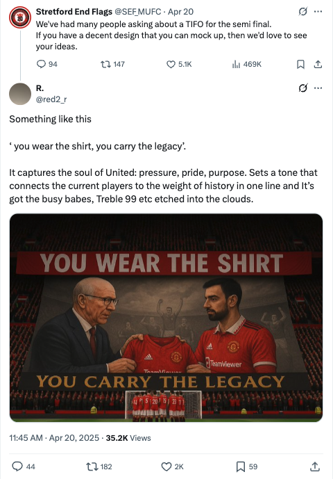 这条回复收获了超过2000个赞和许多积极评论,斯特雷特福德端旗帜团体很可能已经将其提交给俱乐部。即使被选中,也可能会进行一些修改,但总体信息是曼联球迷所支持的。