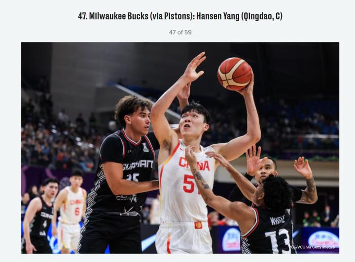 再创新高,美媒更新模拟选秀榜,杨瀚森第47顺位被雄鹿选中