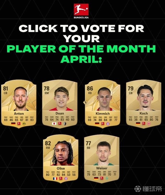 德甲4月最佳球员候选:基米希、奥利塞、安东、堂安律在列盖坦9 @懂球帝2025-05-07 19:33北京时间5月7日,德甲4月最佳球员候选名单出炉,这6名球员为安东、堂安律、基米希、科赫、奥利塞、魏泽。德甲5月最佳球员候选名单多特-安东(出场4次,打进2球)弗赖堡-堂安律(出场4次,打进1球,助攻2次)拜仁-基米希(出场4次,打进1球)法兰克福-科赫(出场4次,打进2球)拜仁-奥利塞(出场4次,打进1球,助攻3次)不莱梅-魏泽(出场4次,打进1球,助攻1次)展开更多